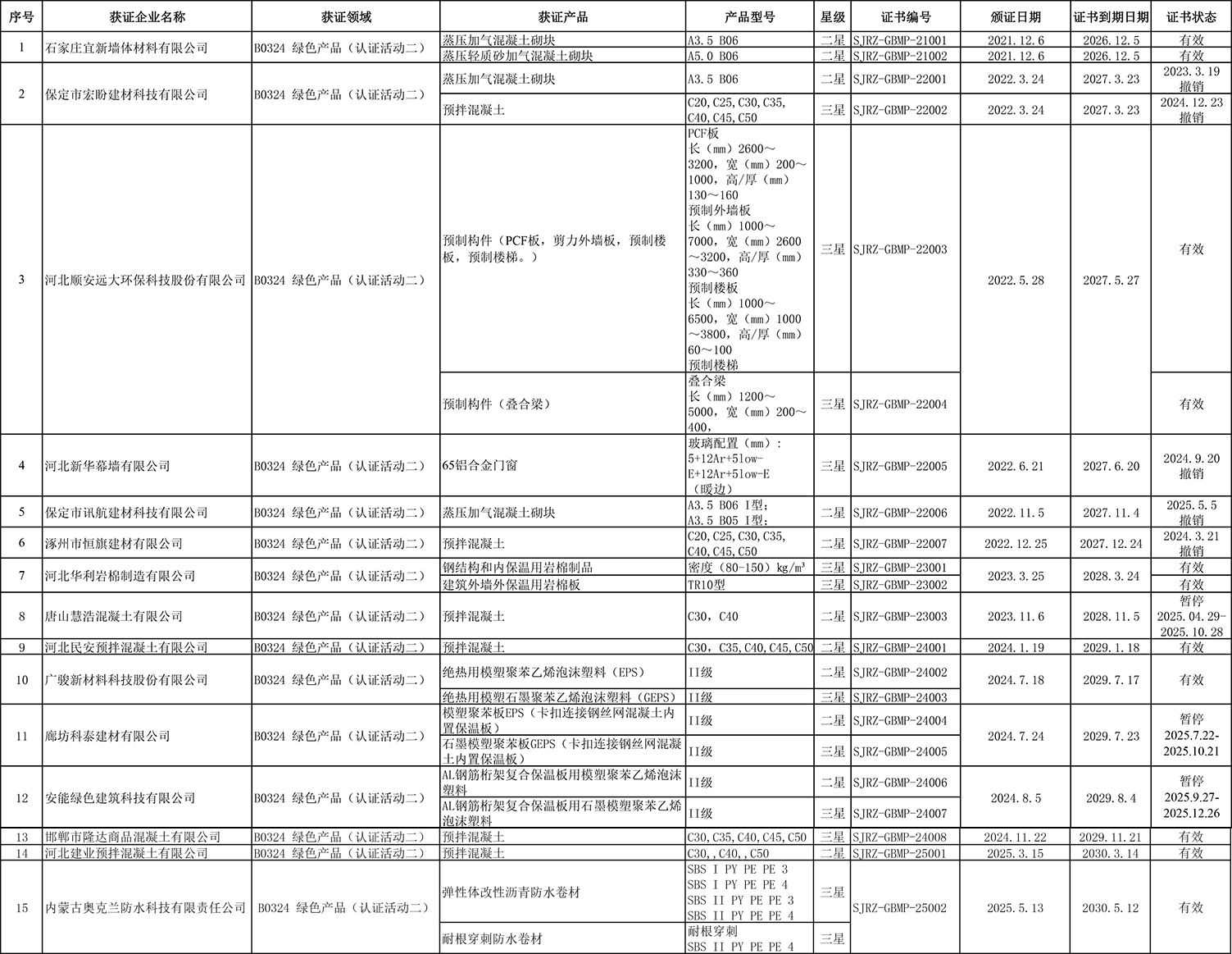 绿色建材产品认证证书有效、暂停、注销或者撤销的状态